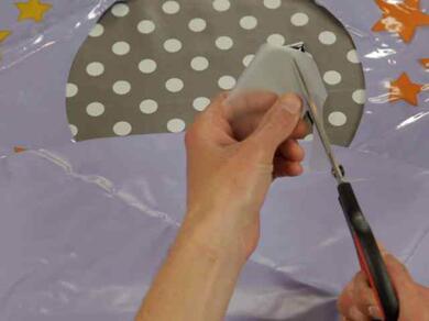 Taie o bucată din plasturele pentru reparații la dimensiunea corectă și întinde o cantitate uniformă de adeziv atât pe obiectul de reparat, cât și pe plasture.