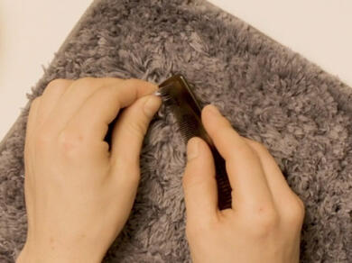 最後,用細齒梳輕輕梳理地毯,清除剩餘的 Blu Tack®,就完成了!