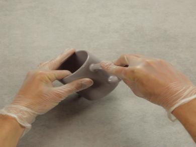 當杯子與杯柄對齊後,請用力壓緊。膠水會立即產生牢固的黏合效果,持久耐用。